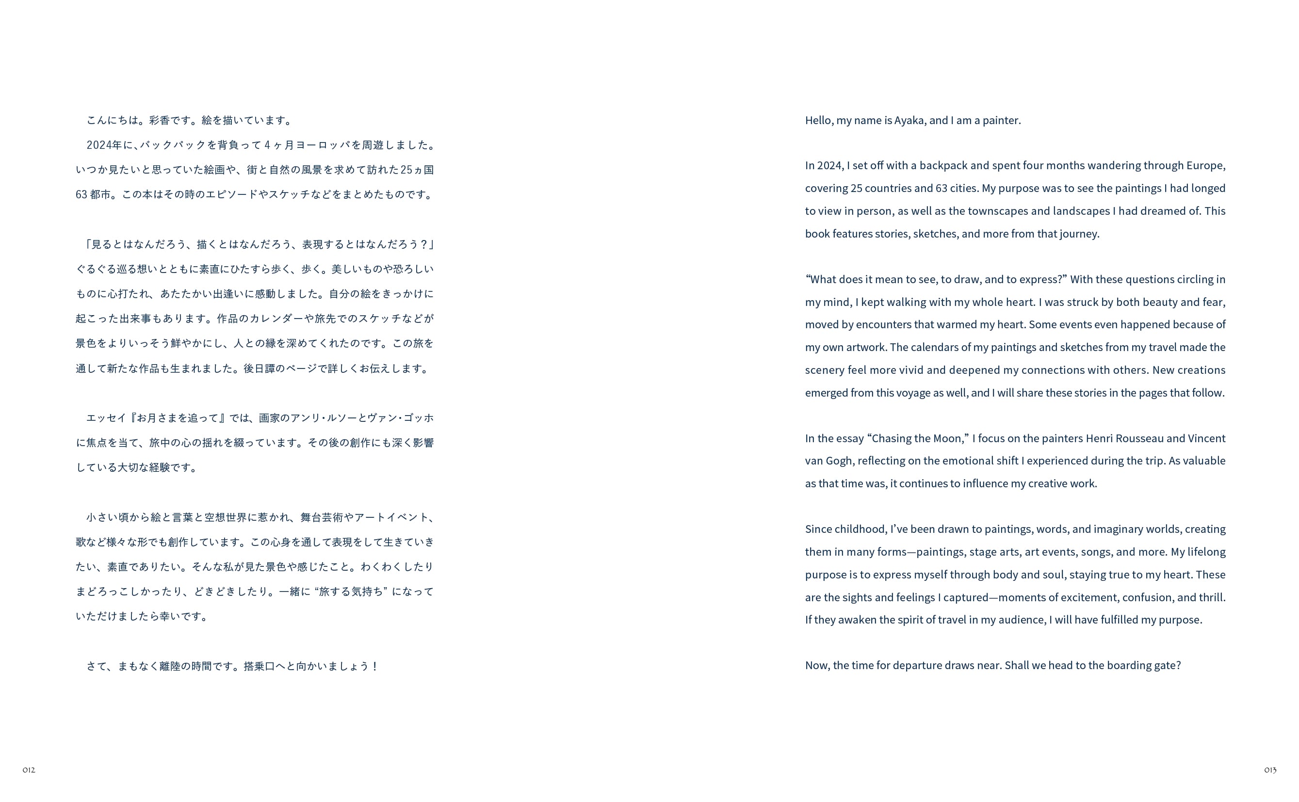 旅先では始終表現することについて想いを巡らせました。また、旅で見聞きしたことの中には、より多くの人に伝わってほしい歴史や文化がありました。そうした事柄についても綴っています。