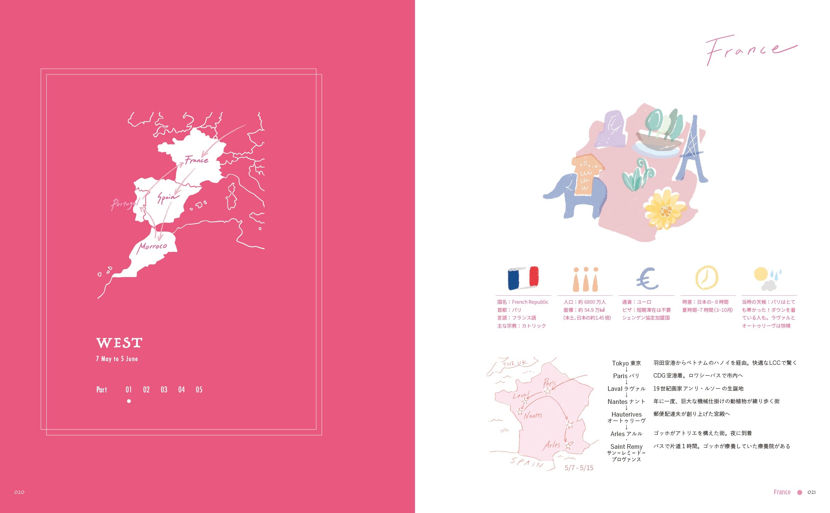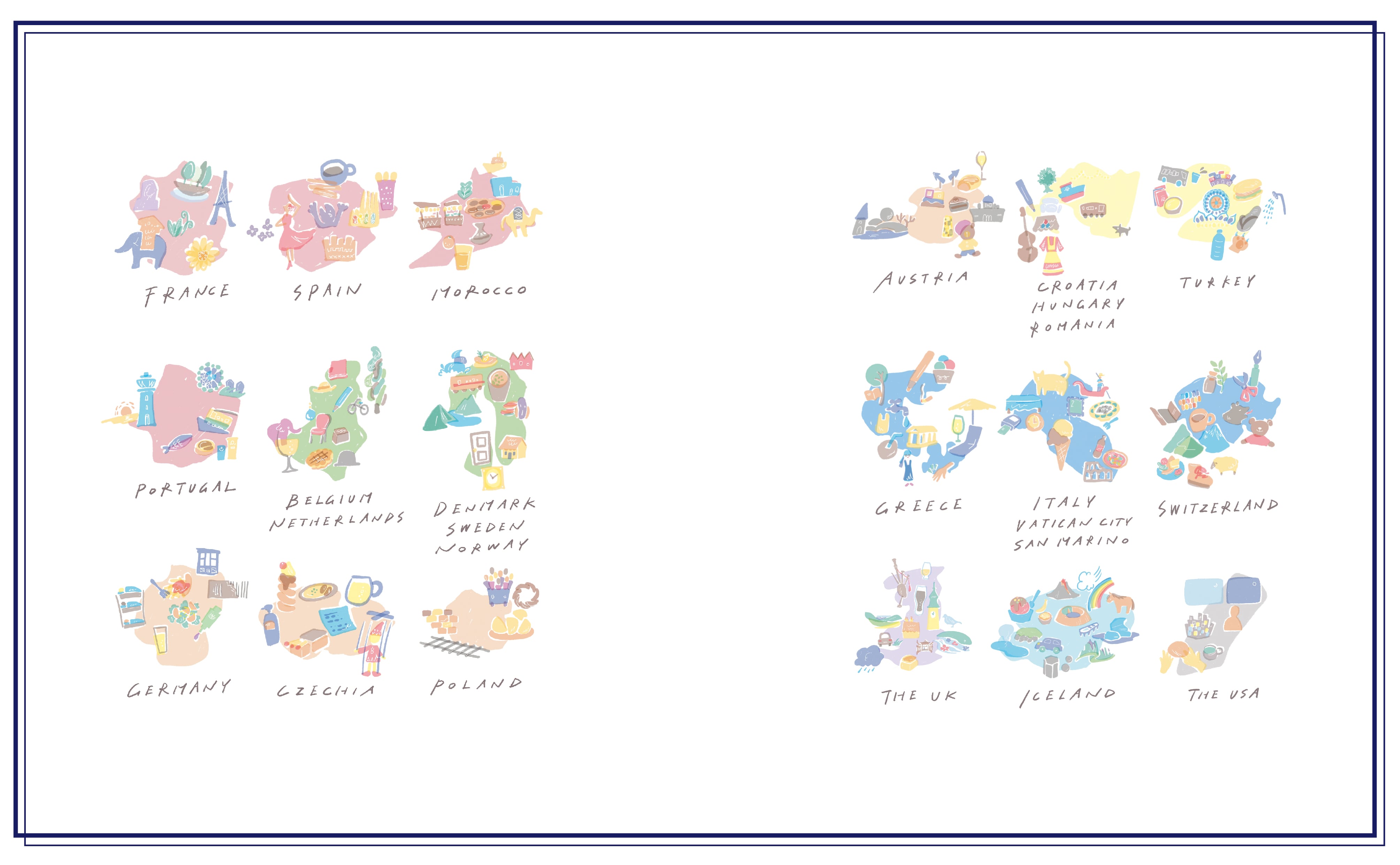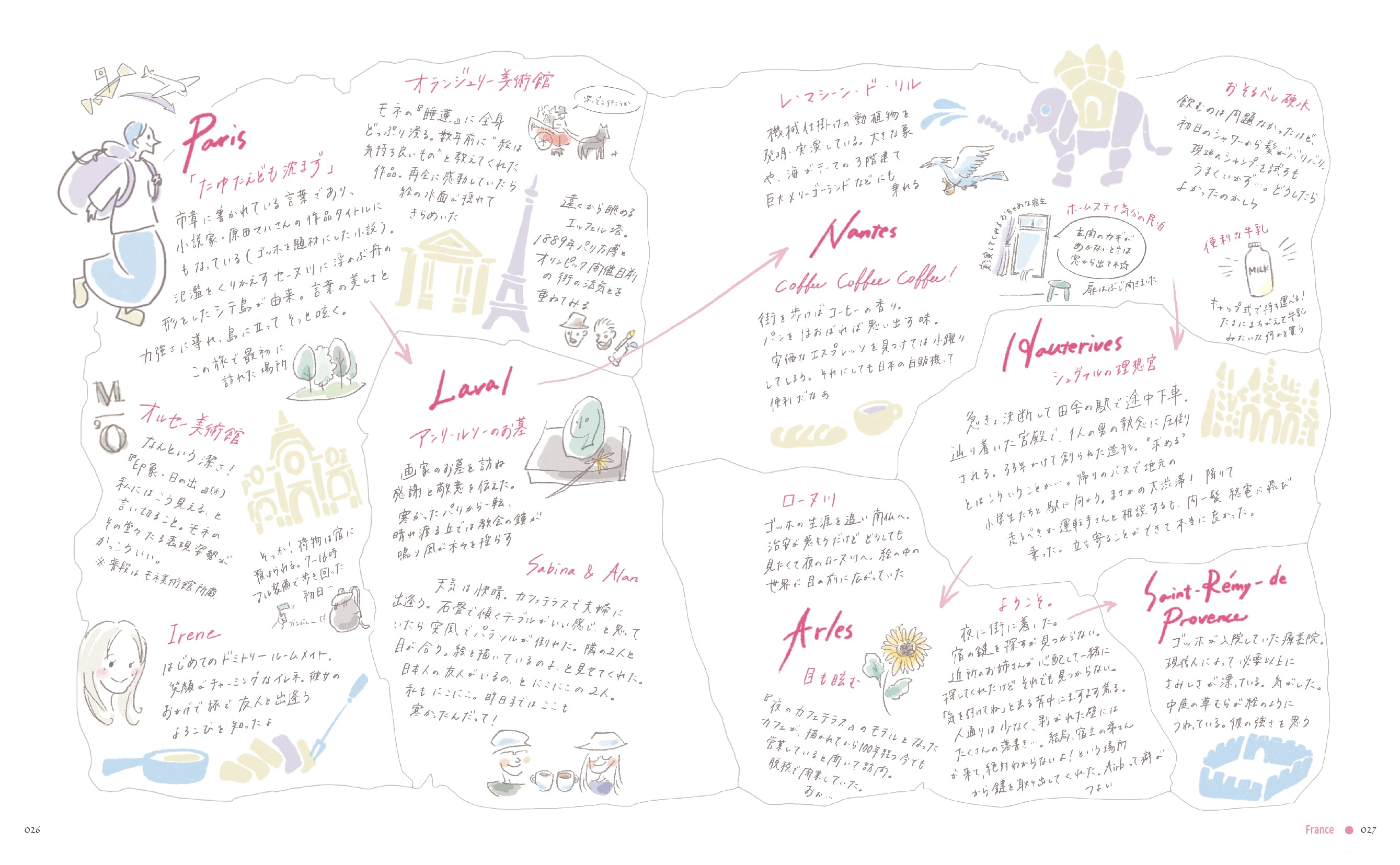 旅先でのスケッチや写真、描き下ろしイラストとともに、各国を一緒に旅している気持ちになっていただけると思います。